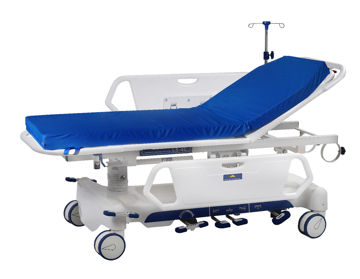 • BRANCARD OLÉO-DYNAMIQUE À PÉDALE À COMMANDE SEMI-AUTOMATIQUE • STRUCTURE EN ACIER, PANNEAU DE LIT ET RAILS LATÉRAUX EN PLASTIQUE PP • LE FREIN CENTRALISÉ ASSURE UNE STABILITÉ PARFAITE ET MAINTIENT • HAUTEUR VARIABLE ET TRENDELENBURG (0-13°) RÉGLABLES PAR PÉDALE • FOURNI AVEC: DEUX BARRIÈRES LATÉRALES RABATTABLES, RÉGLABLES, UN PORTE-BOUTEILLE D’OXYGÈNE ET UN LARGE PLATEAU • MONTÉ SUR QUATRE ROULETTES PIVOTANTES DE 150 MM ET 5ÈME ROUE DIRECTIONNELLE CENTRALE • LE CHARIOT BRANCARD EST FOURNI AVEC SON MATELAS AUTOEXTINGUIBLE (DENSITÉ 30 KG/M3), RECOUVERT D’UNE HOUSSE LAVABLE ET IMPERMÉABLE • DIMENSIONS: 61 X 190,5 X 58/81,5 CM. CAPACITÉ: 200 KG
