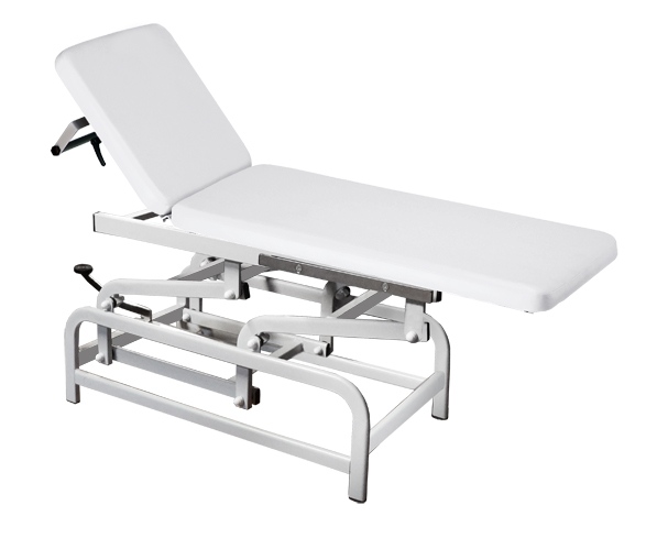 • CONSTRUCTION EN ACIER EMAILLÉ. RÈLEVE-BUSTE RÉGLABLE. • MATELAS REMBOURRÉ AVEC REVÊTEMENT LAVABLE. • AVEC PIEDS RÉGLABLES ET PORTE ROULEAU • HAUTEUR VARIABLE PAR POMPE HYDRAULIQUE • DIMENSIONS: 55 X 180 X 58/86 CM. CAPACITÉ: 150KG