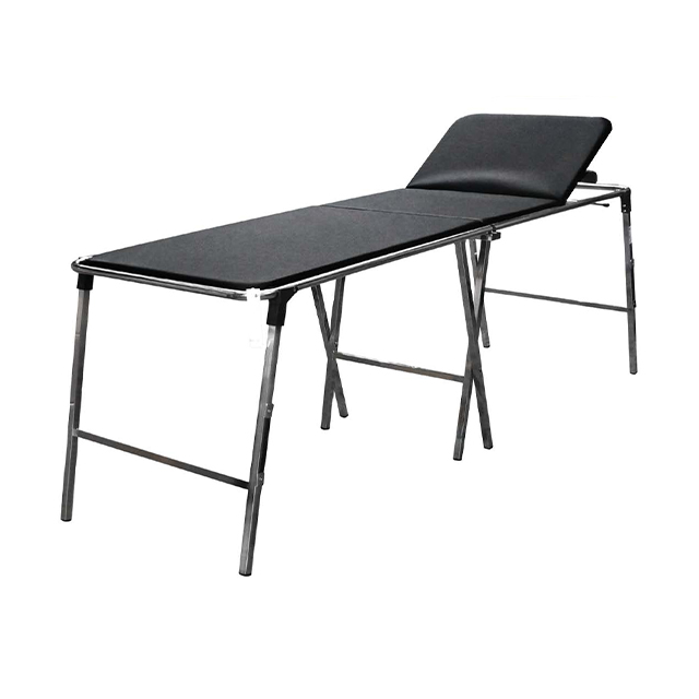 STRUCTURE EN ACIER CHROMÉ • MATELAS REMBOURRÉ AVEC REVÊTEMENT PLASTIQUE LAVABLE. • LIVRÉ AVEC HOUSSE DE TRANSPORT. • DIMENSIONS: 60 X 173 X 73CM. CAPACITY: 150KG