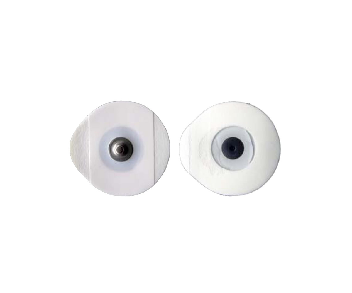 ÉLECTRODES ECG JETABLES AVEC GEL SOLIDE, ARGENT/CHLORURE D’ARGENT (SSC) CAPTEUR ET S.S. PRESSEUR. ADULTE 50X48MM OVALE