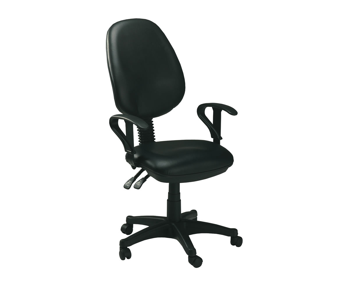 • PIVOTANT. ASSISE ET DOSSIER EN SIMILI-CUIR LAVABLE. • PIÈTEMENT À 5 BRANCHES AVEC ROULETTES. • DOSSIER INCLINABLE. • HAUTEUR VARIABLE PAR POMPE À GAZ. • DIMENSION: 63 X 66 X 90/100 H. CM