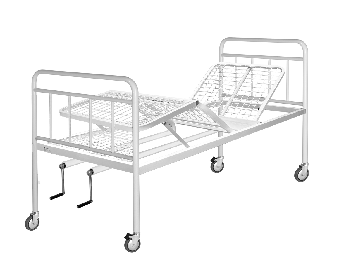BÂTI MÉTALLIQUE, REVÊTEMENT ÉPOXY ET SOMMIER EN TREILLIS MÉTALLIQUE. TÊTE ET PIED DE LIT À BARREAUX VERTICAUX REVÊTEMENT ÉPOXY. • 4 ROUES Ø100 MM, 2 AVEC FREIN. • DIMENSIONS: 85 X 200 X 50CM. CAPACITÉ: 150KG