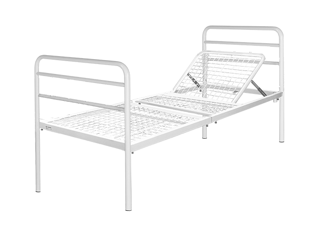 Structure en acier laqué époxy Sommier en treillis métallique Relève-buste réglable par crémaillère à 45°. Capacity: 150Kg. MATELAS NON INCLUS