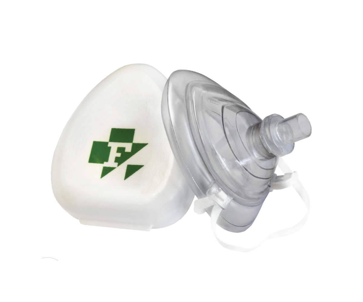 MASQUE CPR, BREVETÉ AVEC UNE VOIE ET DIAPHRAGME DIRECTIONNEL. FABRIQUÉ EN PLASTIQUE TRANSPARENT, CONÇU POUR ADULTE ET ENFANT. BORDURE À INSUFFLER SOUPLE. LE CONNECTEUR FOURNI (22 MM) PEUT ÊTRE UTILISÉ AVEC UN INSUFFLATEUR MANUEL. LIVRÉ SOUS ÉTUI COMPACT AVEC UNE NOTICE D’UTILISATION.