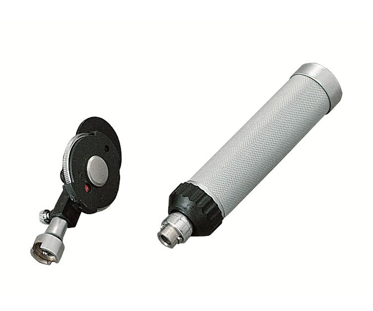 ECLAIRAGE STANDARD 2,5V. LENTILLE CORRECTRICE DE 0 À +20 ET DE 0 À -20 DIOPTRIES. AFFICHAGE LUMINEUX D’UN GRAND CERCLE. MANCHE CHROMÉ POUR 2 PILES TYPE C. (NOT FOURNIES).