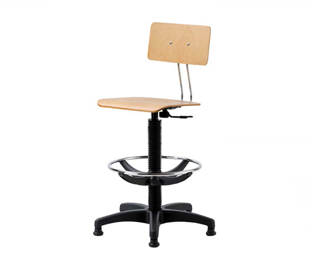 • ASSISE ET DOSSIER EN BOIS. PIÈTEMENT À 5 BRANCHES. REPOSE-PIEDS. • HAUTEUR RÉGLABLE 85/109 H CM. • HAUTEUR VARIABLE PAR POMPE A GAZ