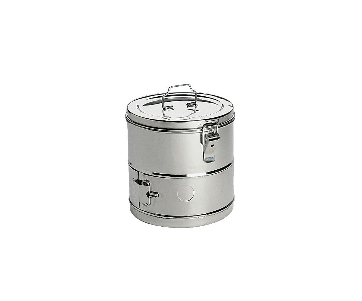 ACIER INOXYDABLE 18/10, COUVERCLE À CHARNIÈRES ET FERMETURES LATÉRALES. MM. Ø 125 X 80 H